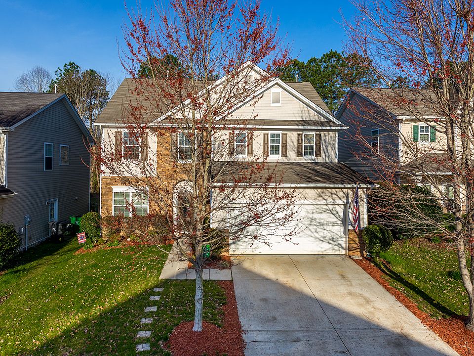 NEW PAINT, NEW CARPET. Situated on a fenced, wooded lot in a family friendly community, this beautiful home has space to spare! Located near recreation & lakes, & close to the SC border, this home sits in a great location! Luxurious hardwoods greet you in a flexible space and run through this open floor plan to the back of home to the cozy fireside family room. A wall of windows looks out into the backyard complete with fire pit. Adjacent eat in kitchen makes entertaining easy with extra seating at island bar, as well as upgraded pendant lighting and pantry. Mud room sits conveniently off kitchen while upstairs, 3 beds on a split bedroom plan with privacy for master with an ensuite bath that has a double vanity, soaking tub, and huge walk in closet. 2 more beds share a full bath and a common area loft is perfect for media/play room!