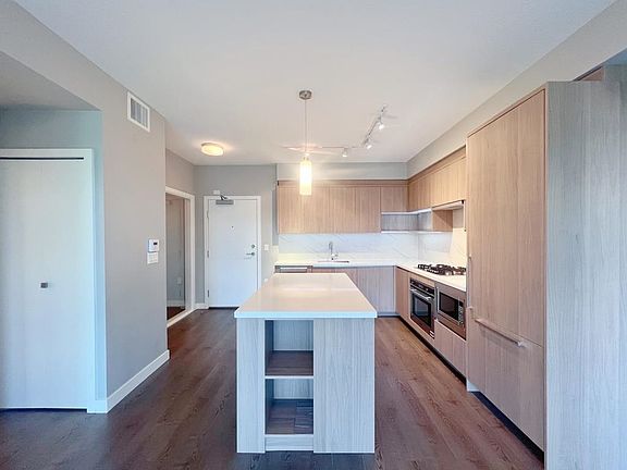 Omega by Concord Pacific TOP FLOOR EAST FACING 2 Bedroom and Den with 9 foot ceiling. Integrated kitchen appliances and cabinets with engineered quartz stone countertop, triple glazed windows, central heating & cooling system, wide plank laminate floors. Den can also be used as a guest bedroom. Amenities include fitness centre, entertainment room. Secured under building parking stall (#14). Central location, close to Walmart, retail shops, restaurants & public transit. Open House June 25 & 26 (Sat and Sun) 2-4 pm.