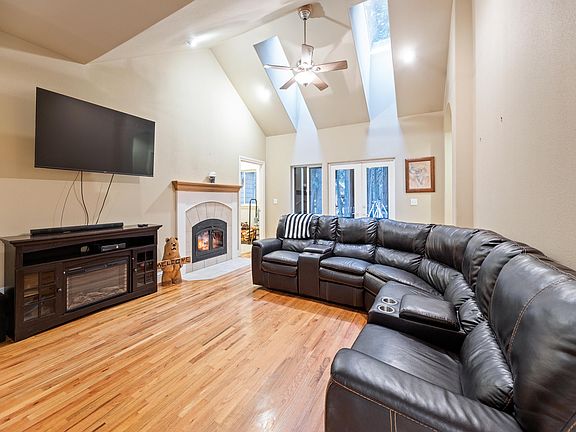 Beautiful newer home near Lake McCumber! Warm welcoming entry with a spacious covered front porch with tongue and groove ceiling. Inside you will find soaring vaulted ceilings with skylights, large view windows and cozy wood burning stove. Light and bright kitchen boasts tile counters, SS appliances, center prep island and adjoining dining space with bay window. Relaxing owner's bedroom has an ensuite bath with double sinks, tile, extra large shower and walk-in closet. The sunroom/ porch is perfect for sitting outside, sipping your coffee and enjoying the newly fenced, low maintenance backyard with large pine trees. Hardwood floors, kerosene heat, whole house fan and ceiling fans throughout. Boat/ RV Parking and graveled driveway. MUST SEE!
