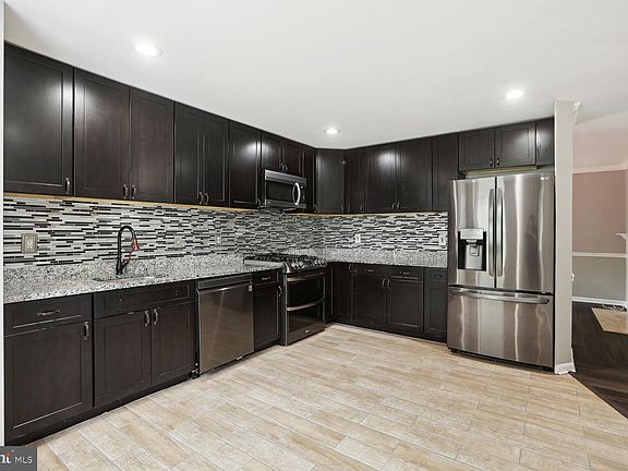 Stunning townhome in New Town Community just hit the market in Owings Mills! This beautiful end-unit townhome features 5 bedrooms and 3.5 baths.The gorgeous living room has a double sided, stone front fireplace and bar area. A spacious dining room with marble fireplace, chair rail and crown molding and is perfect for entertaining. The eat-it kitchen boasts granite counters, stainless appliances, modern tile backsplash, gas cooking and table space. There is a conveniently located main level powder room. The spacious owners suite bedroom is adorned with a vaulted ceiling, a walk-in closet and en-suite bath. There are two additional upper level bedrooms, and a second full bath. On the lower level is a fully finished family room with vinyl plank flooring that is ideal for an in-law suite. Also on the lower level are two more bedrooms and a third full bath. Enjoy the sunset on the deck for relax on the covered porch.
