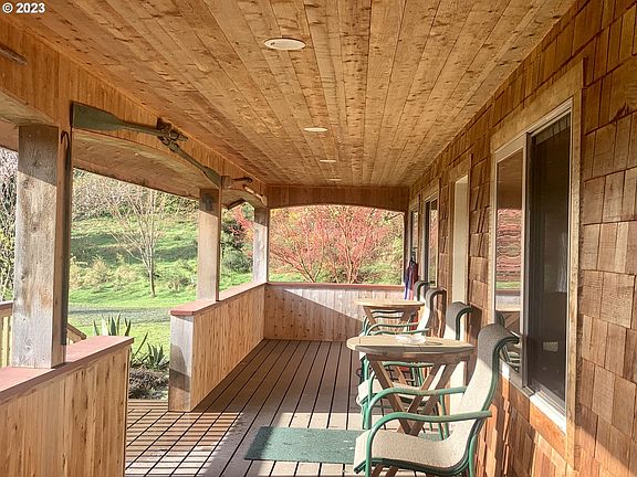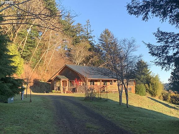 Outstanding custom-designed cedar shingle home embraces restful views from its spacious front deck. Warmth and richness of a cedarwood open-plan interior holds an exquisite soapstone stove at its heart. Enjoy 10+ acres of trees and grass, a year-round creek, and fishing, hunting or hiking at your fingertips. Perfectly situated on the Elk River Valley hillside, just a few miles from Port Orford and the Siskiyou National Forest, this home is move in ready, even the furnishings can be included!