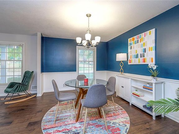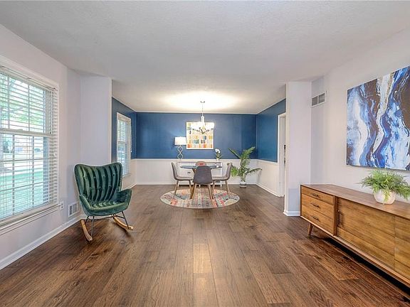 Discover this beautifully updated 2-story gem in a desirable Lenexa neighborhood! The main level showcases new engineered hardwood floors and an updated kitchen featuring granite countertops, white cabinetry, stainless steel appliances, stylish light fixtures, and a spacious island perfect for gathering. With two inviting living areas on the main level, including a living room with a charming brick fireplace and a formal dining area, this home is ideal for hosting family and friends. Fresh interior paint adds a modern touch throughout. Need more room? The finished basement provides extra space for movie or game nights, complete with new carpet. Don't worry about your storage needs; the basement still has plenty of unfinished space. Step outside to enjoy the private, fenced backyard, perfect for relaxation on the large deck or hosting BBQs. The home backs to a wooded area, offering added privacy. Upstairs, you’ll find roomy secondary bedrooms and a primary suite with hardwood floors, ample closet space, and an updated en-suite bathroom with a double vanity. Additional upgrades include a 2-year-old AC unit, a 1-year-old furnace, a newer 200-amp electrical panel, updated windows, removed popcorn ceilings, and refreshed landscaping. Conveniently located near Lenexa's shops and restaurants and just a short distance (less than 1 mile) from Sar Ko Par trails, park, and aquatic center, this turn-key home is not to be missed!
