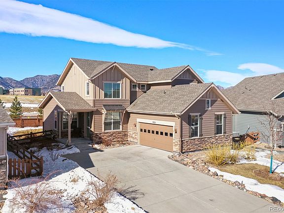 Welcome to this beautiful two-story home in the highly desirable Candelas community! Enjoy stunning mountain views from nearly every angle of the home. Enter through a welcoming entryway with vaulted ceilings to impress, that leads you to the bright and spacious living room, offering a seamless flow with views that extend into the kitchen and dining area, bringing in tons of natural light. The open eat-in kitchen is packed with all of the essentials, tons of storage, and is the perfect place for family meals or casual gatherings. From the dining space, you have access to the patio, ideal for outdoor entertaining!