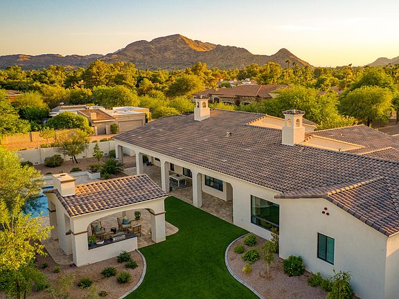 Beautiful Santa Barbara Transitional custom home on over an acre in one of Paradise Valley's most desirable locations. The home's luxurious interior styling, design, and finish elements are in keeping with the clean-lined transitional style that is on trend. At nearly 7000 sqft the home's open concept split floor plan is ideal for family living, entertaining, and gatherings. Offering 5 spacious bedrooms, 5.5 bathrooms with sumptuous master bath, gorgeous chef's kitchen, formal and casual dining, great room, large game or flex room, office, and fully appointed guest house. Unparalleled options for indoor/outdoor living including private resort backyard with multiple patio and sitting areas, oversized pool and spa, poolside cabana with fireplace, and grilling station. Exquisite lush