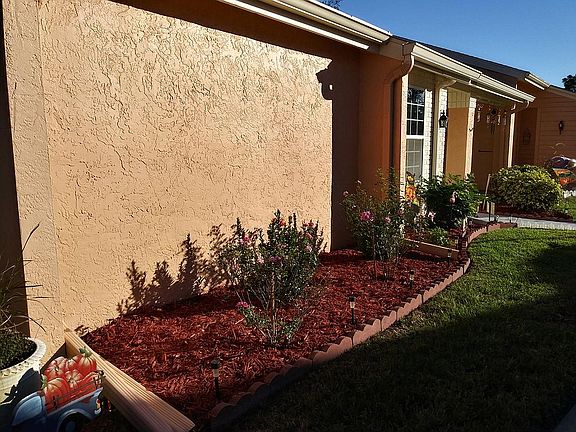 Adorable, move-in ready villa in Heritage Lake, 55 plus community – deed restricted. Lakeside neighborhood, private property, no pets allowed. 1300sq ft. which includes sunroom with heat and A/C. Tile throughout for easy care. All matching whirlpool brand appliances, includes convection oven and stove with glass top. Fridge with ice maker convey with house. Hot water tank a few years old. Roof replaced in 2013. Still with warranty. Each of the bedrooms have large walk in closets. New gutters in front and back of house. Bali blinds throughout. Security system conveyed with the house. All new lighting with ceiling fans in all rooms. New double pane windows, new water saving 17 inch toilets. All new counter tops and sinks. Has Trane XL heat pump for heat and A/C with a variable speed in air handler for low electric bills. Both bathrooms are handicap accessible with new master shower door. Covered carport parking with shed for storage. Guest parking also. Amenities include year round Heated pool with lake view. Tennis courts, Shuffle ball, Bocce, and much more.. Several clubs to join. Close to shopping, restaurants and hospitals. Close to I-75 and Suncoast Parkway.