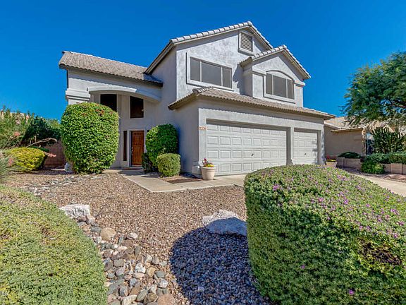 Amazing two story property in Scottsdale with charming curb appeal is on the market & offers mature front landscaping and 3 car garage. Immaculate interior boasts plantation shutters, living room w/double height-ceilings, skylights, formal dining, plush carpet in all the right places, family room, and tile flooring in traffic areas. Spacious kitchen includes nice appliances, maple cabinetry, mosaic back-splash, pantry, and breakfast nook. Master retreat has bay window, walk-in closet, private access to loft, and vaulted ceilings that adds to the spacious feel. Master bath with large double sinks, soaking tub & step-in shower is a delight. Large backyard offers covered patio and desert landscaping w/mature trees that provide constant breeze. Don't miss this amazing opportunity. Call today!