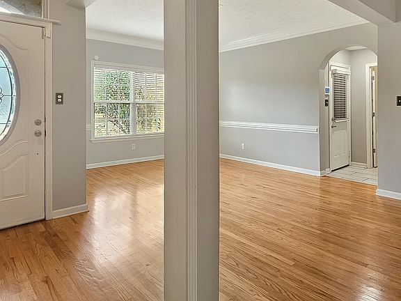 Welcome home to this stunning rental that greets you with beautiful curb appeal, lush landscaping, and a spacious 2-car garage. Step inside and discover an open, inviting layout featuring gleaming wood floors, soaring ceilings, and impressive arched doorways throughout. The formal dining room is ready for your holiday dinners and flows seamlessly into the family-sized great room, highlighted by a cozy gas-log fireplace.The gourmet kitchen is a dream--equipped with double ovens, a smooth cooktop, granite countertops, and plenty of cabinet space. It opens to both the breakfast area and a convenient breakfast bar for extra seating. Just beyond, the oversized hearth room offers a second fireplace, creating the perfect space for relaxed evenings or entertaining guests. A nearby laundry room adds style and function with a custom floor and built-in storage cabinets.The split bedroom layout features the primary suite on the main level, complete with a luxury bath offering dual sinks, a jetted tub, walk-in shower, and large walk-in closet. Two additional bedrooms and a full bath sit on the opposite side of the home. Upstairs, you'll find two more spacious bedrooms and a full bath--ideal for guests, kids, or a home office setup.Enjoy peaceful mornings or unwind in the evenings on the screened-in patio overlooking a huge, fenced backyard with plenty of room to play or relax.