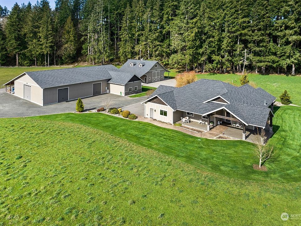 Dream country estate! Long gated drive leads to stunning home, massive shop & barn sited on 13+ ac nestled by a wooded hillside. Inviting timber frame patios front & back, surrounded by lovely landscape & visiting deer at play, custom crafted home features warm woods, beams, high vaults, huge windows-great light. Open chef’s kitchen seats a crowd-steps to indoor or outdoor dining. Private spa-like owners’ wing. 3BR+office, energy effic, heated tile floors, amazing storage! GIANT 96x60 shop w/24x96 lean-to & 576sf finished area w/ 3/4BA+laundry. 36x48 barn: 2 stalls, tack rm, loft. Irrigated, productive acreage, RV hkups, fenced garden area. RRR1/5, 2 addl septics-poss devt? 10 mins to I-5, under 20 mins to Olympia. Country life is calling!