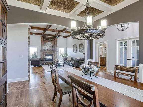 STUNNING CUSTOM BUILT RANCH home in sought after Woodneath Farms subdivision! Large corner lot that backs to GREEN SPACE! GOURMET KITCHEN features large granite island and HUGE walk-in pantry! Hardwood floors added to living room, dining room and master bedroom! All hardwood floors refinished to match! Dining room also features custom tin ceiling! Spacious great room with wood beam ceiling and fireplace that passes through to deck! New interior paint in kitchen, great room, hallway, and lower level hallway! Huge master bedroom with walk-in closet that utilizes higher space with pull down rods! Master bathroom has HEATED FLOORS! Entertain family and friends in your finished, walk-out basement with WET BAR, WINE CELLAR and MEDIA ROOM! Lower level also features 4th bedroom and full bath! Relax outside on your deck with fireplace or your huge extended patio! Wrought iron fenced back yard! Exterior painted 2022! Deck stained 2022! Tons of storage! Liberty public schools! HURRY! You won't want to miss out on this GORGEOUS HOME!
