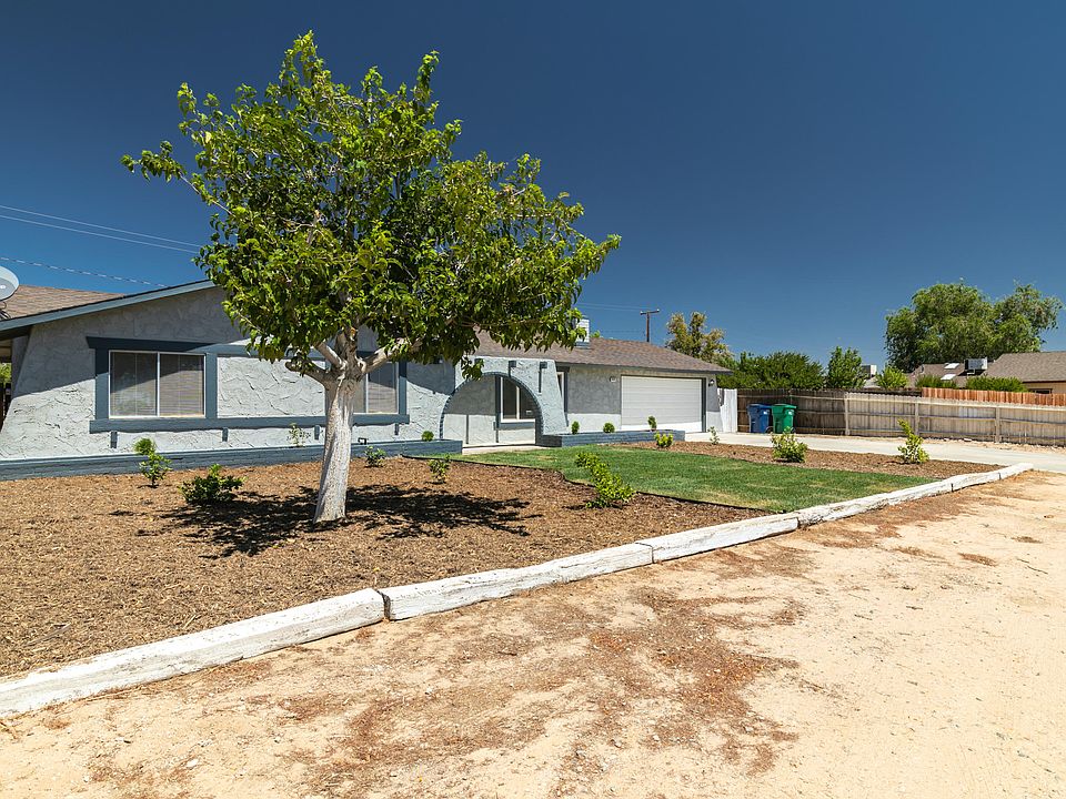 This charming home offers three bedrooms and two baths. The outward appearance of the home consists of landscaped front yard with potting boxes, grass, trees, and shrubs. The wide entry into the home has a welcoming feel. The elongated living space has a cozy fire place with an adjacent kitchen and sliding door to access the spacious backyard. The kitchen also offers extra cabinet space and long counters. The master bedroom has two closets and dual sinks. Bathroom two has a deep sink and long standing showing.