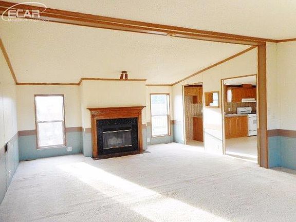 HUD House. Three Bedroom with Two Full Baths, which features a master bedroom/bath. Manufactured Ranch on 1.14 acres. Fireplace in Great Room. Large Kitchen open to Dinning area.Two Car attached Garage. Rural Setting.