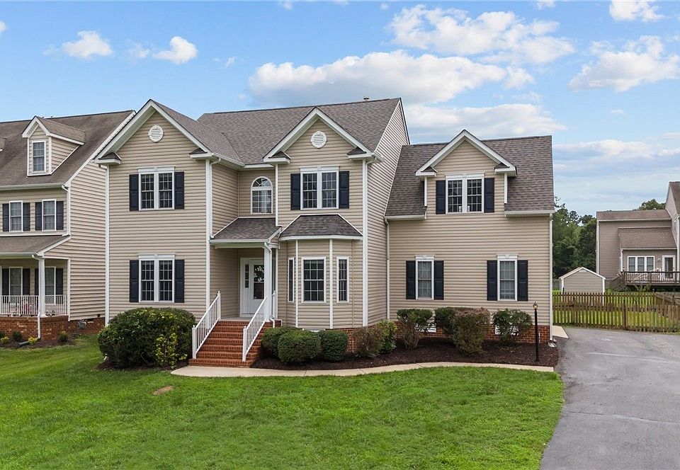 This home is a must-see in the Cloverhill HS district, in the popular Five Forks Village neighborhood! This beautiful 4-bedroom, 3.5-bath residence also features a versatile 3rd-floor bonus room with a full bath which can be customized to suit your preferences, whether as a man cave, teen retreat, entertainment room, or fifth bedroom. The home has been thoughtfully updated with brand-new oak flooring on the first floor, fresh carpet in the bedrooms, and luxury vinyl plank flooring in the bathrooms and laundry room. The first floor welcomes you with a large living room that boasts a cozy gas fireplace and elegant hardwood flooring. The dining room is perfect for formal gatherings, complemented by beautiful wainscoting and crown molding. An additional office or study space adds versatility to the main level, making it ideal for work or relaxation. Outside, enjoy a newly built back deck, and next summer collect the fruit from the peach tree in the yard! The spacious second floor includes a huge primary bedroom with a sitting area, and an ensuite bathroom with two vanities, a soaking tub, a separate shower, and a water closet. Additionally, you have TWO walk-in closets both updated with white barn doors. Each of the three additional bedrooms on the second floor offers generous closet space and plenty of natural light. The loft area at the top of the stairs provides additional living space, while the conveniently located laundry room adds to the home's functionality. With three separate HVAC units, you can enjoy personalized climate control on each floor. There is a new dimensional roof. The community amenities include a pool, tennis courts, a clubhouse, and a playground. You will love the easy access to shopping, dining, and Rt 288. Set up your personal tour today!This home qualifies for a reduce interest rate!! Contact Listing agent for more information. Owner agent.
