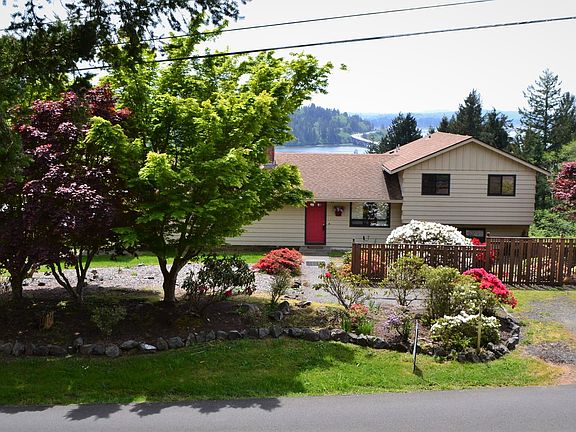 Nice Shorewood split-level with large deck to enjoy wonderful Bay/bridge views. Home has large living spaces with nice brick hearth with fireplace on one side and pellet stove on the other. Master bedroom has balcony and bay view. 2-car garage with 22'x11' foot finished hobby room. Roughly 1-acre lot has rock wall terracing and very nice landscaping. A solid home with views in a desirable, quiet North Bend neighborhood, don't miss it!