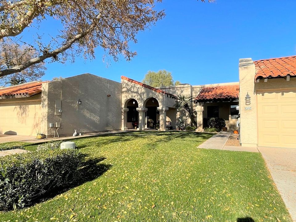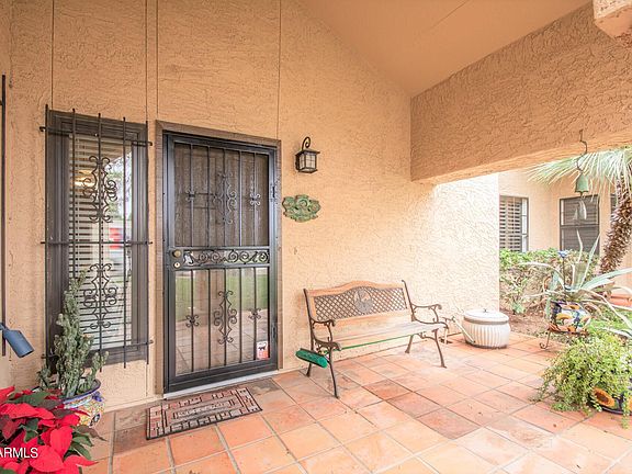 BEAUTIFUL townhome with two bedrooms and two bathrooms * Single level with a two car garage! * One of only a few in the community featuring a den addition * Dual pane windows throughout * AMAZING upgraded kitchen features updated cabinets, 2 lazy Susans, pull-out shelving, Stainless steel appliances * Spacious living room with fireplace * All tile flooring throughout home * Large and comfortable principal bedroom suite with sliding glass door to yard and upgraded bathroom * Second bedroom also has sliding door to yard * Second bathroom upgraded in 2022 * Den can be used as an office, sun room or hobby room and has dual pane windows w/wooden blinds, updated lighting & closet * Air conditioner was updated in 2016 * Durafoam roof in 2020 * Large, desert landscaped back yard with mature trees & desert plants & drip irrigation (one of the largest yards in the neighborhood) * Security doors & windows * Starburst shutters in living room * Solar tubes in guest bedroom, master bathroom & garage * Large tiled front patio and beautiful emerald green lawn * Two community pools * Scottsdale Vista Townhomes community has a park-like setting with two sparkling pools! * Wonderful Scottsdale location close to shopping, fine dining, parks & services * See this home today!