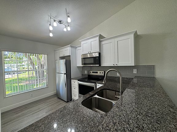 Welcome to the Stag Model at Hunters Ridge Maintenance-Free Luxury Living in the Heart of New Port Richey! This beautifully maintained 1,355 sq. ft. villa offers comfort, style, and convenience in a sought-after 55+ community. From the moment you arrive, you'll be greeted by lush landscaping and mature trees that create a serene, welcoming environment. Step inside to soaring cathedral ceilings and an open-concept floor plan adorned with luxury vinyl plank flooring throughout. The spacious kitchen is a chef's delight, featuring upgraded white shaker cabinets with crown molding, a sleek gray tile backsplash, granite countertops, and stainless steel appliances. Enjoy added versatility with an extra rear seating area perfect for a den, reading nook, or hobby space complete with washer and dryer hookups for your convenience. The spacious guest bathroom offers white shaker cabinetry, granite countertops, and elegant gray and white tilework with a full tub. The oversized primary suite is a private retreat, featuring a walk-in closet and a beautifully updated en-suite bathroom with a floor-to-ceiling tiled walk-in shower, granite counters, and premium finishes. Hunters Ridge is more than just a community it's a lifestyle. Enjoy access to a heated pool, state-of-the-art fitness center, pickleball courts, putting green, and dog park. All just steps away from Publix, shopping centers, restaurants, medical offices, and more. Schedule your private tour today and discover the effortless charm of villa living at Hunters Ridge! Tenant responsible for electricity. No Smoking allowed. Water, Sewer, Trash, Wifi, Cable included in the monthly rent. Up to (2) pets are allowed under 35 lbs. no aggressive breeds.