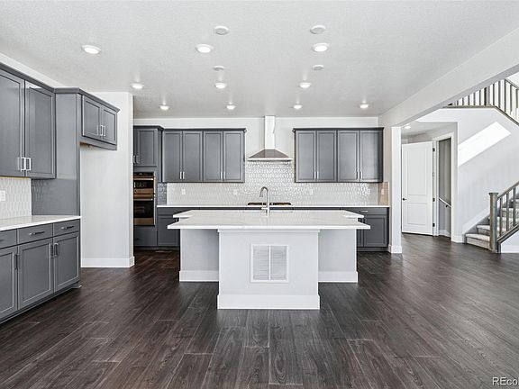 MLS#1610528 Ready Now! The Vail at Trailstone has been elevated with extensive enhancements, making this top-selling floor plan truly exceptional. This lot backs to a greenbelt making it more secluded from neighbors. This floorplan is thoughtfully designed for maximum livability, the home offers flexible bonus rooms and customization options to suit your lifestyle. From the foyer, step past the study into the striking two-story great room, highlighted by a cozy gas fireplace. Next to the dining area, the hearth room features a double-sided fireplace for added warmth and ambiance. The entryway and pantry provide ample storage, while the expansive kitchen with an eat-in island is perfect for hosting gatherings. Upstairs, you'll find three generously sized secondary bedrooms, two full baths, a convenient laundry room, and an oversized storage closet. The luxurious primary suite completes the upper level with dual closets and vanities, creating a truly refined retreat. Structural options include: fireplace, covered outdoor living, hearth room in lieu of playroom with 2 sided fireplace, gas line rough in on patio, utility sink rough in, drop zone at owner's entry, shower in lieu of tub, 8' interior doors second level, and owner's bath configuration 5.