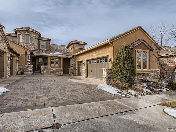 SHOW STOPPER! TAKE YOUR BREATH AWAY! RARE LOW MAINTENANCE RANCH STYLE beauty w/walkout basement & huge finished 3car attached garage! Duplex unit. Welcome to your own luxury Tuscan Tresana Villa. THE PREMIER LOCATION IN COMMUNITY! This magical sanctuary backs to a lovely EXPANSIVE OPEN SPACE -Overlooking views of GLORIOUS MOUNTAINS, orange/pink sunsets, meadows, extensive trail systems, towering trees, lush vegetation, and a natural creek/charming bridge. Your own private oasis. Come sit on your private deck & take in nature, serenity and amazing scenery. Sip morning coffee w/the birds and butterflies. Spend summer evenings barbecuing under the stars. The huge windows encase picturesque natural views like artwork from most rooms! The elegance, refinement and charm of Italy is captured. Tuscan features include-stucco/stone walls, wrought iron, beautiful archopenings & contemporary lines. Amazing sprawling open/airy floorplan w/vaulted ceilings. This stunning property is appointed with VERY HIGH-END DESIGNER FINISHES! Featuring-3/handsome fireplace centerpieces (family, master & rec room). Whole house indoor/outdoor speakers. Gleaming cider hickory wood and jurastone travertine floors. High-end lighting & window treatments. Chef's gourmet kitchen w/handsome artisan bronzed glazed 42in cabinetry, sleek juperana arandis granite counters, HUGE island, stainless high-end appliances, 5 burner gas cooktop & vent. The gracious master includes en-suite travertine 5piece bath w/soaking tub, seated shower, dual sinks & large walk-in closet. You will love the smashing lower level walkout with Rec Room, wet bar/frig, 2 large bedrms & travertine/granite full bath. Ample unfinished space- storage, gym, crafts. This level also offers beautiful views of open space. Opens to patio w/fire pit & lovely grassy area. Perfect for pets and entertaining. Enjoy miles of trails right out your door! Easy access-C-470, Restaurants, Whole Foods, mountains, DIA. HR Rec Centers included w/HOA!
