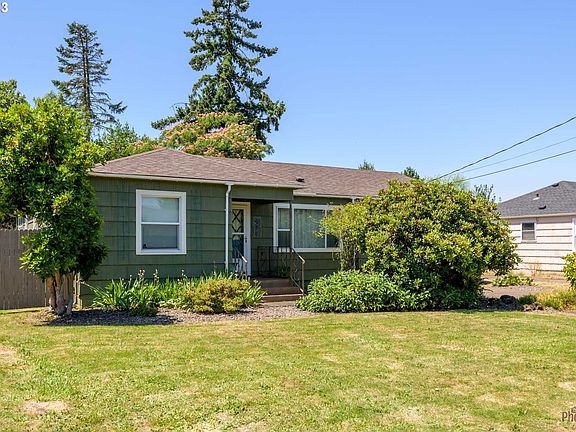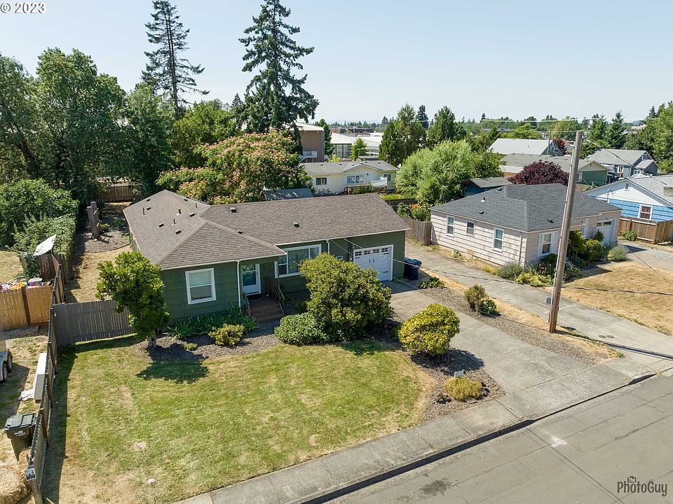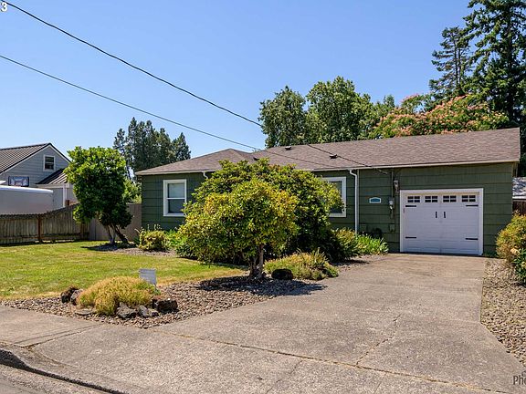 Come see this nicely maintained, charming late 1940's-built home with modern updates. Coved ceilings and original hardwood flooring run through the living room and two bedrooms. Completely new heating system, heat-pump, and ducting three years ago. The fully remodeled kitchen boasts granite counters, custom cabinets, stainless-steel appliances, & tile flooring. The primary bedroom includes an updated bathroom with custom cabinets and tile shower. Either of the other bedrooms could be a great home office as one has French Doors and the other a built-in desk and murphy bed. The garage was completely insulated, with new sheetrock, door, and opener. Above the garage is an additional 13'x10' room that could be used for storage, another bedroom, etc. Enjoy indoor outdoor living on the fully enclosed, 15'x11' covered back patio that is great for entertaining. Next to it sits an 8'x8' BBQ shack. Further out back is the spacious yard with mature and diverse landscaping including mimosa, Asian plum, and bay laurel trees. It also has two storage buildings, one 11'x16' with power that could possibly be a small workshop, and the other 11'x10', with a concrete floor. Fully fenced and areas for gardening, etc. The Southside of the house has an area large enough for possible small trailer/boat parking. Close to shopping and McKenzie Willamette Medical Center. Home backs up to Maple Elementary School.