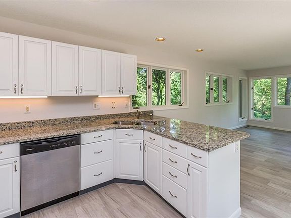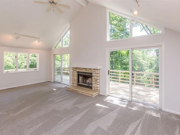 A rare combination of privacy, solitude, and convenience where you will be minutes from downtown, while feeling as though you are hundreds of miles away. This acreage is located on a hard surface road and boasts numerous flowers, plants and mature trees. It is common to have deer, turkey and other wildlife right outside your window. Enjoy your coffee in the great room with soaring windows flanking the stone fireplace. Or have a nightcap on the huge deck overlooking your own piece of paradise. This 2 bedroom, 1 ½ bath home has been completely updated on the inside with new flooring, paint, appliances, remodeled kitchen and baths. The basement has also been painted and carpeted and has plenty of room for a non conforming bedroom, a theater area, a playroom, or whatever your heart desires. There is an attached two stall garage.