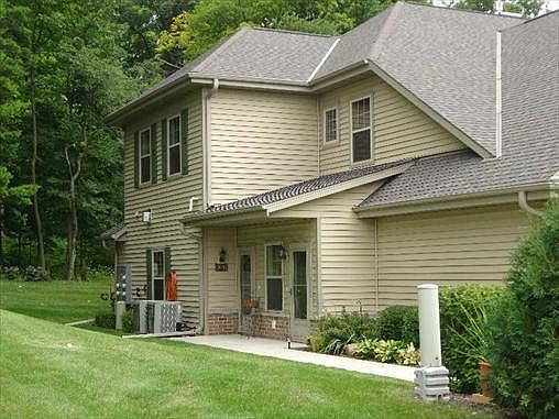 Spacious 3 bedroom, 2 bath end unit condo overlooking Braisure Woods Park. This condo has been nicely updated with granite countertops, stainless steel appliances, tiled backsplash, wood plank flooring in kitchen, pull out lower cabinets and more. Unit has 3 large bedrooms and 2 full baths. Gas fireplace, covered balcony, 2.5 car attached garage. Walk in Closet in Master, in unit laundry and low monthly condo fee of $175. Outdoor wildlife abounds with turkeys, deer, birds, etc. Move in condition and easy to show. Please remove shoes and/or use booties provided.