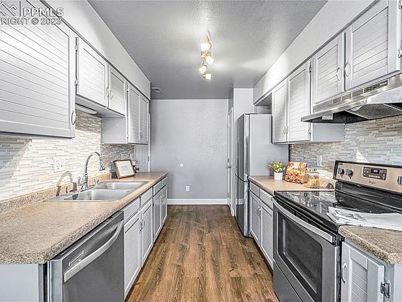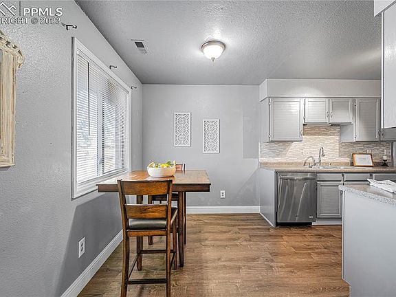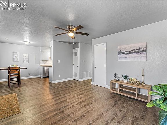 Charming 3 bedroom 1 bath rancher is move in ready and close to shops, parks, and ammenities! Beautiful laminate floors throughout the main living areas and new carpet in the bedrooms. All appliances will stay to include a new upscale stainless steel refrigerator, newer dishwasher and newer washer and dryer! Bonus room off the garage included in the square feet would be an ideal game room, gym, hobby room, playroom or sunroom! Central A/C to keep you cool in the summer! Enjoy BBQ's on the HUGE patio off the back, and cozy up with a glass of wine or cup of coffee around the firepit in the backyard. Large dog run will keep your pets happy and a shed allows for extra storage or a workshop area. Conveniently located close to schools, shopping, parks, Ft Carson and Peterson, this is a great place to call home!