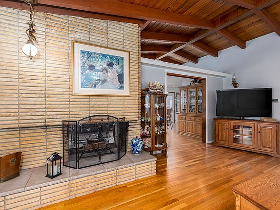 Discover this stunning 3-bedroom, 2-bath ranch home located in the desirable south side of Ottawa! Featuring beamed, vaulted ceilings and beautiful hardwood floors, this home offers both elegance and comfort. The spacious living and family rooms share a cozy, see-through wood-burning fireplace, creating a warm and inviting atmosphere. Both rooms have sliding glass doors that lead to a serene screened-in porch, perfect for relaxing while overlooking the beautifully landscaped, fenced-in backyard. The layout of the home provides a private retreat with all three bedrooms and two bathrooms located on the opposite end for added privacy. Convenience is key with a laundry room just off the 2-car attached garage. Whether you're entertaining or enjoying quiet time at home, this property has everything you need for comfortable living in a peaceful neighborhood. Don't miss your chance to call this beautiful ranch home yours!
