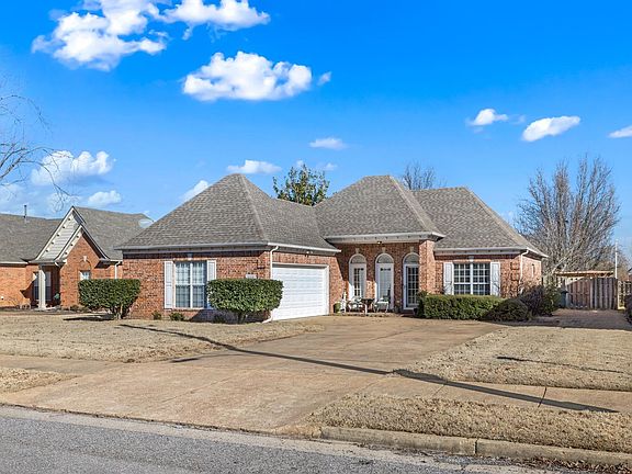 Home offers a front porch, 2 car garage, double wide driveway, lots of windows, patio, and fenced in backyard. Floor plan has living room with high ceiling and a fireplace, breakfast bar and eat in kitchen (refrigerator stays), large primary bedroom, primary bathroom with separate tub and shower and huge walk in closet, 2nd and 3rd bedrooms, full bathroom, and laundry room. Located close to shopping and a short drive to Walnut Grove and I40 for a quick commute to wherever you need to go.