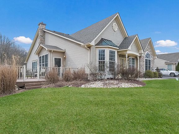 Welcome to 934 Daylily Drive! Found in the very desired Flowers Mill neighborhood- a 55+ active community complete with a swimming pool, tennis courts, fitness center, billiard room, clubhouse and jog/walk path too. This beautiful Thornhill Quad home has privacy landscaping and a beautiful view overlooking the retention pond. Covered Front Entrance that opens into the foyer. Formal living room with double window allows lots of natural light to pour in. The dining room has a beautiful chandelier. Open floor plan allows you to glance from the dining room to the front door and to the family room. Floor to ceiling gas fireplace in the family room with a custom mantel and twin quarter-round windows on both sides. Office/Sunroom off the family room that leads out to the 22x18 deck overlooking the backyard that back to woods. In the kitchen you will find granite countertops, 42" Maple Cabinets, stainless steel appliances and a 5-burner stove top, 4-drawer French stainless steel refrigerator and eat-in breakfast area. Master bedroom has Double window with circle top to allows for natural lighting and new carpeting. Enjoy your space in the master bathroom complete with two vanities, walk-in closet and wall closet, master shower with double seats and a large dressing area. 2nd bedroom on the main floor has a large bay window and it's own full guest bathroom with a tub. Finished Loft with a powder room is perfect for a 2nd office or guest suite. 2 car garage for parking and additional storage. Terrific location, close to all major highways and shopping centers.