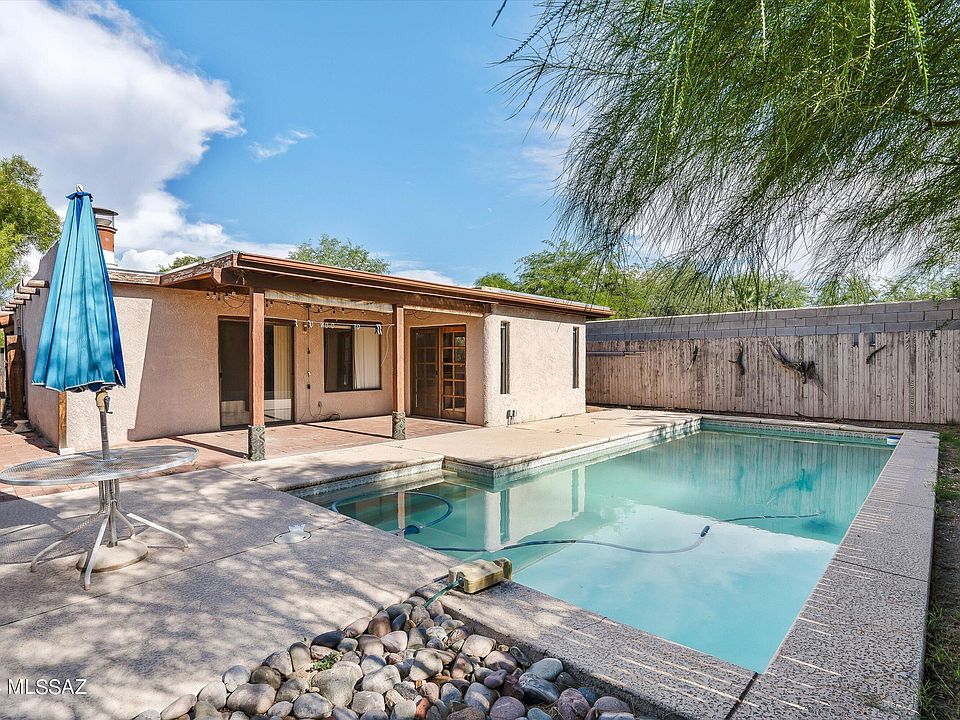 This is the one! Amazing opportunity to live in a coveted community with your own private pool! This ''detached'' townhome has a warm & welcoming entry to the Great Room & adjacent kitchen. Neutral paint & tile flooring throughout. The kitchen is perfect for entertaining with custom cabinetry, extensive counter space, a center island, built-in wine rack & desk. Primary bedroom ensuite has 2 large closets. Secondary bedrooms are well appointed, in which one has a private entrance for a guest or office space amenity. Private backyard oasis with private swimming pool. NEW ROOF components installed Feb. 2024 & warranty transferable to new buyer(s)! This location is in Central Tucson's Campus Farms area, with close adjacency to U of A, UMC, Rillito ''The Loop,'' shopping, restaurants, & more!