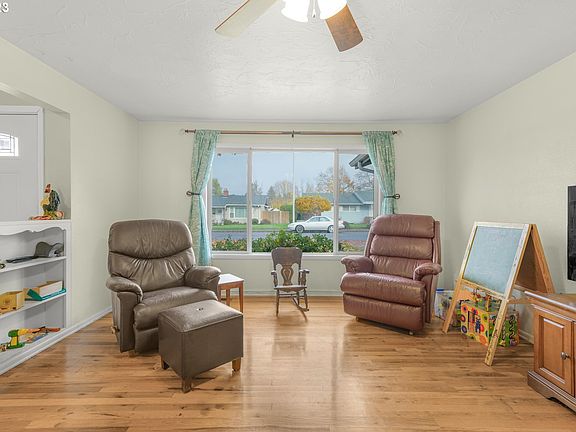 Welcome to this charming mid-century ranch in the Palma Ciea neighborhood. Step inside and discover the original oak floors throughout the living room, hallway, and bedrooms, creating a warm and inviting atmosphere. The living room is bathed in natural light, thanks to a large window that frames the space beautifully. The kitchen has a quaint window seat bench that adds character and charm and has lots of counter space and cabinet storage. Adjacent to the kitchen is a spacious family/dining room featuring newer flooring, a brick fireplace, and a sliding glass door that opens to the backyard. The home offers three bedrooms and two full bathrooms, providing comfortable and private spaces for all. The laundry area features a utility sink and a bathroom with a shower. A portion of the garage has been thoughtfully converted into a cute bonus room and a utility room with abundant storage space, catering to your lifestyle needs. Step outside to the fully fenced backyard, where you'll find a covered patio and raised garden beds, creating an outdoor space for relaxation and enjoyment. Located in a highly desirable area, this home is in close proximity to schools, restaurants, shopping, and the picturesque Palma Ciea Park along the Willamette River. Embrace the convenience of city living while enjoying the tranquility of this well-established neighborhood.