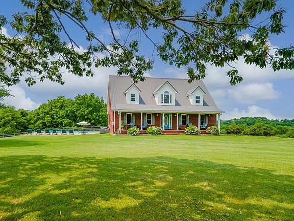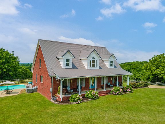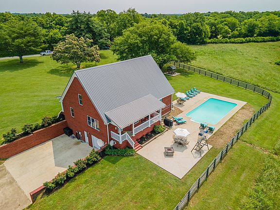 Custom brick home with a miles long view! Gorgeous backyard views of evening sunsets, valley pastures & distant rolling hills can be enjoyed from the patio, in-ground saltwater pool or covered back porch. Home & grounds have been meticulously maintained & updated in regards to newer metal roof, paint, flooring, modernized kitchen w/ copper basin sink, fixtures, finishes, pool equipment, quality kitchen appliances and more. The private pool area is resort-like with poured concrete patios, walkways, a saltwater filtering system and amazing views. The 2 story brick home has a full basement with climate controlled living areas and another full bathroom (used in past as a bedroom area/in-law suite situation) surrounded by the expansive unfinished portion that sees current use as a hobby area and for covered car storage. The entirety of the home has ample storage and best use of space has been utilized throughout. The front yard is expansive & perfect for recreation, a garden spot or just to enjoy the manicured look and special feeling of private land ownership. The property is perimeter fenced with natural wood plank fencing custom installed by a local builder. Long road frontage of over 400 feet on a peacefully slow moving road. Located directly between Nashville, TN and Huntsville, AL and very near I-65 this is the perfect spot for easy commute. Historic Lynnville, TN is minutes away with thriving Pulaski, Columbia and Lewisburg having easy access. The land is located in a special area of Giles County locally known as Hunt Country, several neighboring landowners enjoy English equestrian sports and can often be seen riding the slow moving roads. This home and grounds offer amazing backyard views from the level hilltop lot that also has ultimate privacy & the security of distant neighbors. Public water, septic system & soon to have fiber optic cable in June 2025. This is a very special place and THERE IS ABSOLUTELY NOTHING EXACTLY LIKE THIS AVAILABLE!