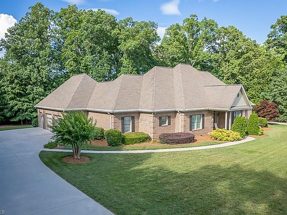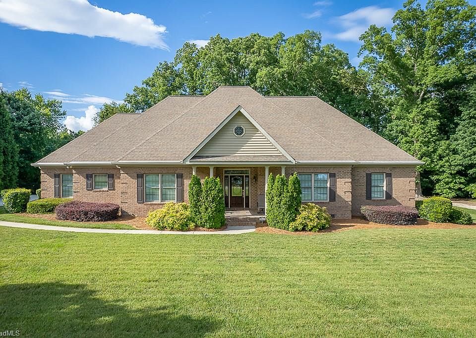 Enjoy country living feel and only short drive to Greensboro/Winston-Salem and the Triad Farmer's Market. Custom built home by Richard Andrews Builders. This all brick home sits on 1.42 acres. Marble floor entry and hardwoods throughout main level. Large primary suite on main level features two walk-in closets; en-suite bath with separate shower, garden tub, double vanities. 4th bedroom on main currently used as office. Spacious kitchen with walk-in pantry, built-in desk area with glass door cabinets above. Second floor offers two bedrooms and full bath. Two-car garage and additional small bay for lawn equipment. Irrigation system. Wired for generator and generator conveys.