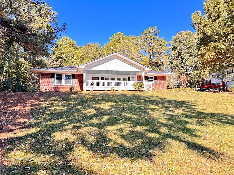 Wonderful Brick Ranch in charming Brookwood Subdivision! The home is move-in ready with beautiful kitchen and bathrooms. Large master bedroom with free standing tub. Living room/den has built in shelving and cabinets. Kitchen with nice new appliances, large island and open to den/living room area. Metal roof and spacious front porch with vaulted ceiling and view of large front yard.