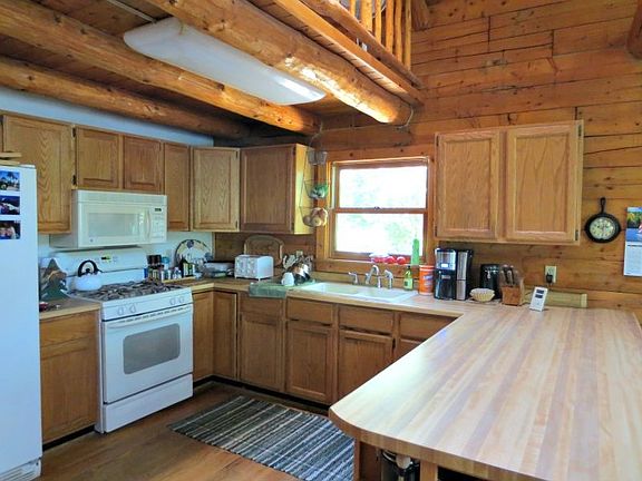 Expansive 3 bedroom, 3 bath log home on 1.4 wooded acres with 192 feet of frontage on the Menominee River! Features include a bedroom and bath on each level, cathedral ceilings, skylights, wood-burning fireplace, walkout lower level, wraparound deck, 2-car detached garage, newer roof, and a fire pit. This is a very private setting yet with beautiful views of the river!