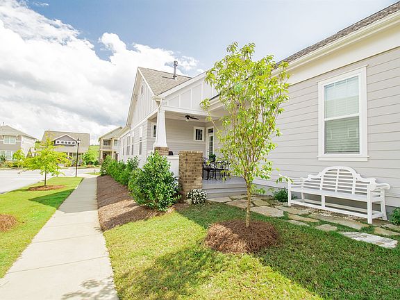 Great cottage plan ranch home in highly sought-after Riverwalk Community! Located close to The River District restaurants, shops, kayak launch & walking/biking trails. This home features site-finished hardwoods, beautiful attention to detail with chair rail, crown molding, and built-ins. Upgraded lighting and fans throughout. Beautiful double glass doors open into large office/flex space. Gourmet kitchen with upgraded cabinets, tons of counter space, granite counters, tile backsplash, SS appliances, and walk in pantry with built in wood shelving. Open floor plan between living room, dining area, and kitchen in center of home creating desirable split bedroom plan with privacy. Owners Suite bath includes tiled shower, garden tub, and dual vanities. Extended covered deck out back with beautiful landscaping & low maintenance exterior. Meticulously maintained and freshly painted covered front and back porches have this home move in ready!