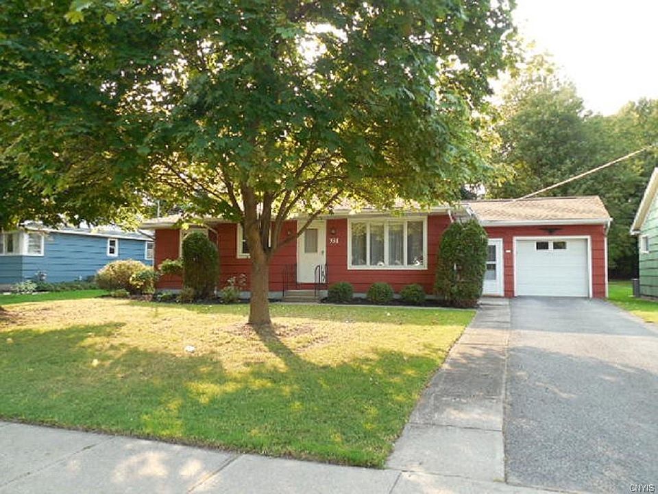 Very well maintained home with attached garage with garage door opener and Shed. Door in back of garage leads to back yard. Attic entrance is in the garage. Spacious kitchen with lots of cupboards and counder space. Formal dining room with view of HUGE backyard with raised garden bed. Lot of wildlife in your own back yard. Back door leads to a deck overlooking the yard. 3 bedrooms with closets and built ins. Living room has insulated drapes which just came back from the dry cleaners! Large windows makes it sunny and warm. Full DRY basement with washer and dryer. Lots of storage space with cupboards and shelving.