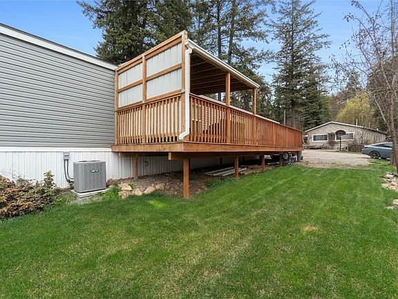 Discover the perfect blend of comfort and convenience at Belva's Mobile Home Park with this beautifully renovated 1996 manufactured home. Substantial Renovation done in 2020, kitchen, bathrooms, flooring, walls, furnace and roof. Boasting two bedrooms and two bathrooms. Step onto the newly constructed deck, complete with a covered area for outdoor relaxation, added in 2022. Inside, the kitchen shines with stainless steel appliances installed in the same year, making meal prep a breeze. Additional updates include the convenience of a gas dryer in the laundry area, also added in 2022 and central air system in 2021, ensuring efficiency and ease of living. Enjoy the lush greenery of the newly laid grass turf in 2023. Situated just minutes away from Armstrong and Vernon, this home offers proximity to a myriad of amenities while providing tranquil mountain views. Move-in ready and pet-friendly with restrictions, this gem is an ideal starter home for those seeking comfort, convenience, and a picturesque setting. Don't miss out on the opportunity to call this your own – schedule your viewing today!