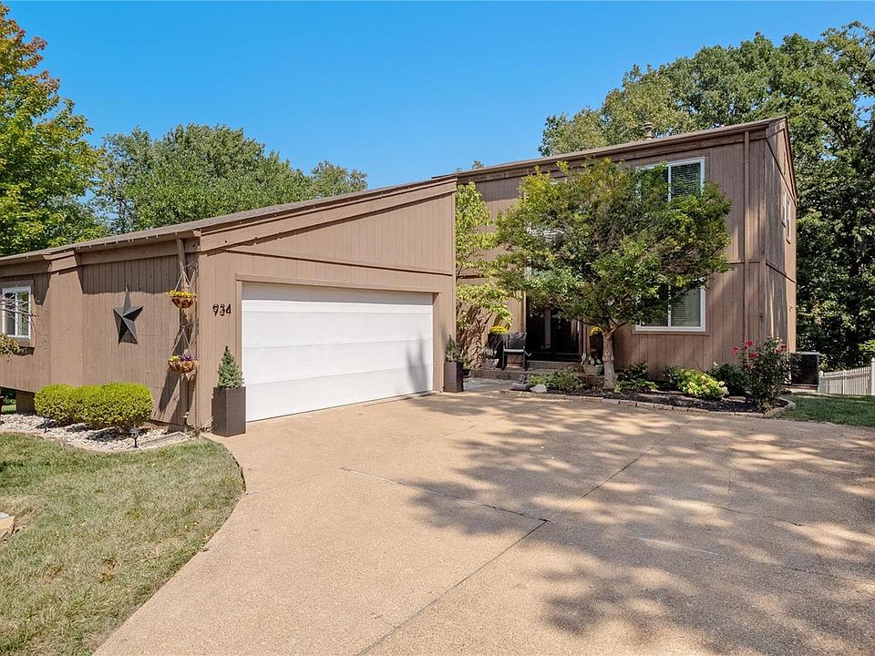 This Mid Century Modern home is tucked away in the beautiful subdivision of Country Lane Woods. The home sits on the largest lot in the neighborhood and has over 2600 sq/Ft of living space!The moment you walk up to this house you will see the incredible landscaping, front patio and porch. The gorgeous glass French doors welcome you to this incredible home. Wood like vinyl flooring runs throughout the main floor with vaulted ceilings, a wood burning fireplace, a walkout deck from the main floor, an updated kitchen, newer windows, blinds and lights fixtures! This home has 3 Bedrooms on the upstairs floors and 3 Bathrooms. Two of the Full Bathrooms on the second floor have been renovated and there is a half bathroom in the basement. The basement is finished with a full wet bar, additional living room and a walk out with a covered patio. Last but not least there is a neighborhood clubhouse with an outdoor pool and tennis courts!