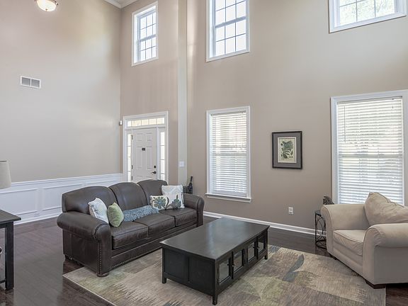 - Interior: 2-Story Foyer, Wall/Wall Carpet, Disp Attic Stairs, His & Her Closets