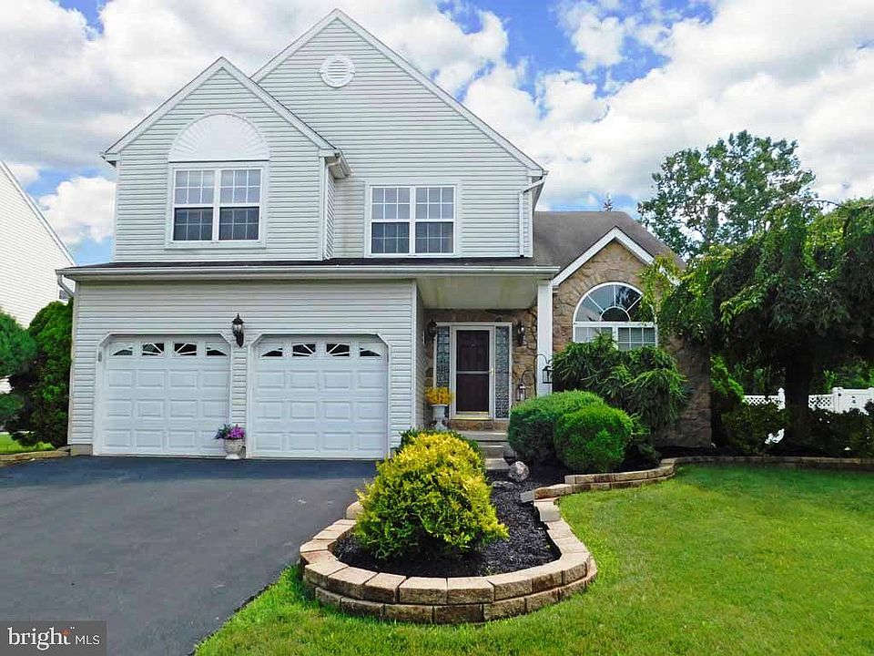 Move In Condition! Impressive Curb appeal ~ Don~t miss the detail with graceful arches and circletop Palladian windows, stone fa~ade complimented by Belgian block landscape border walls, and covered porch front entry with glass block sidelites. You will be swept up by the soaring Living room ceiling and ceiling architectural angles ~ You are not in Kansas anymore, this home offers the Pizzaz you desire! Freshly painted chic pearl grey; New neutral carpet and Amazing large windows throughout. Living Room opens flows into the Dining room with crown molding and delicate day shade blinds. Kitchen Upgraded Granite, super sized Center Island with sleek contemporary faucet, Gas cooking, pantry, and 16 x16 ceramic tile floor that blends the neutral kitchen hues. Breakfast room glass doors open to the Awning covered patio. This Open Floor Plan kitchen is wide open to the 2-story EXPANED FAMILY ROOM where the Fireplace is flanked by glass block windows, with blonde engineered wood floor, recessed lighting and glass doors to the patio for ease of entertaining. Powder room and laundry room to garage complete this level.The expose stairway adds to the drama of the living room with a 2nd level overlook to the family room. Master suite offers Cathedral ceiling and huge sunrise window, walk-in closets, complete in suite bath Upgraded with marblesque tile wainscoting and floor; Roman soaking tub, separate shower and double bowl Granite vanity. Additional window bright brite bedrooms with ample closet space; Guest bath with Granite top vanity, 12x12 ceramic tile floor and tub/shower. FULL FINISHED BASEMENT WITH FULL BATHROOM, Newly painted and carpeted, central HVAC, Open L-shape layout with cool recessed niches, ample closet space and 3rd full bathroom with shower (Teen Suite?). Back Yard Tranquility, huge stamped concrete patio wrapped in lush landscaped privacy; automatic Awning; level fenced yard (open access) with storage shed. Location Location Location ~ minutes to all shopping; Close to Wegmans; shops and restaurants of Doylestown; Easy access to PA TP, train.
