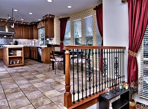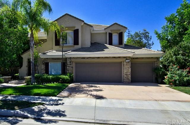Situated in the Rockhurst Estates of Orange is this large distinctive and charming home featuring a panoramic view of the hills & Santiago Creek. Enjoy the view of Orange from your master bedroom balcony and the fireworks from Disneyland most evenings. This beautiful 5 bdrm, 3.75 bath home has soaring ceilings, loads of natural light, Island kitchen with GE Monogram appliances, including a built-in refrigerator & double oven. Leading from the kitchen is a bedrm/Office & 3/4 bath, a large family room & a very cozy fireplace all of which leads to a private back yard which includes a stone hardscape, a large built-in fireplace & BBQ made for entertaining. A formal dining room w/elegant tin ceilings leads to a formal living room w/fireplace and an elegant stairwell leading to the spacious media/bonus room, Jack & Jill Bedrooms/bath, one more bdrm & bath & finally a very spacious Master Suite that includes a bath w/sunken tub, vanity, dual sinks & oversized his/her closets with built in cabinetry along with a private balcony that has views of the hills & lakes. Other amenities include an indoor laundry room, 3 car garage with lots of storage