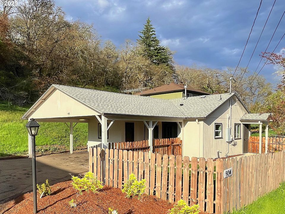 Don't miss this charming little cottage nestled into the hillside of a quiet neighborhood in the center of town. This location is in close proximity to all Roseburg has to offer. This completely remodeled home features 2 bedrooms/full bath with tub,new cabinety,quartz counters, LED can lighting and new stainless appliances w/ refrigerator included. Outside the spacious extra deep double carport provides plenty of covered parking and dry storage! The fully fenced yard was recently laid healthy new sod and all new vibrant landscaping, that includes in-ground irrigation. It's a perfect place to relax and enjoy the upcoming warm, spring evenings outside! Call to set up a private tour today!!
