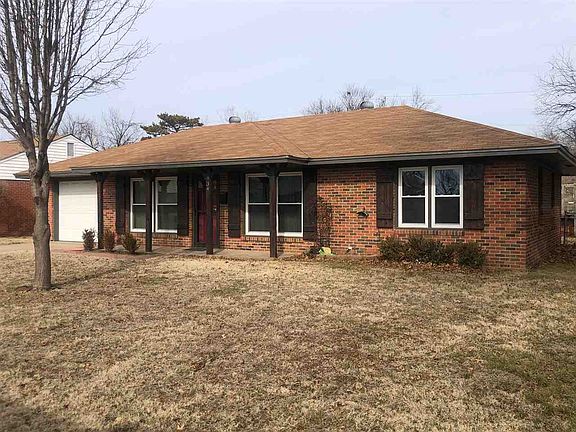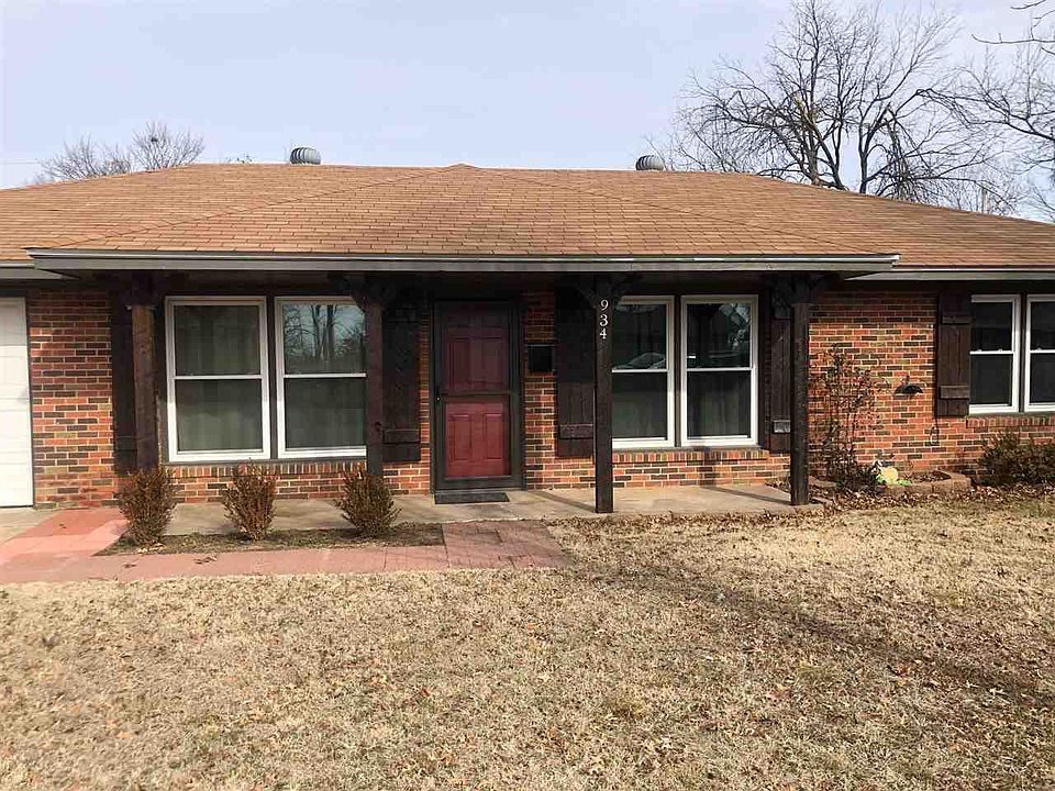 Cozy ranch style with an abundance of natural light, this nicely updated 3 bedroom 1 bath home is move in ready! Enjoy an open living/dining concept, roomy kitchen with gas range, and ample counter/cupboard space. Updated bathroom and wide hallway with extra storage. Wood shutters accent this brick home. Enjoy the covered patio and fenced back yard including a storm shelter and small utility shed.