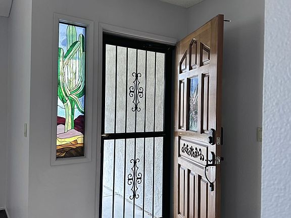 Welcome to Heritage Village Living! This stunning house offers effortless curb appeal with a xeriscaped front yard and a lush rear lawn-perfect for outdoor enjoyment and low-maintenance living. Step inside to discover a spacious open floor plan, where vaulted ceilings soar above the inviting living room, highlighted by two grand skylights and a striking stone fireplace-wood or gas, your choice. The kitchen boasts a generous center island with built-in cooktop, a wraparound breakfast bar, tile countertops, built-in wall oven, dishwasher, and modern recessed lighting-ideal for both everyday meals and entertaining. An enclosed back patio creates a versatile bonus room, perfect for a home office, playroom, or sun-soaked retreat. The home features two master suites. The main suit hosts a walk-in closet and large ensuite bath. 3 bedrooms total and 2.5 baths. Enjoy year-round comfort with AeroCool evaporative cooling, a Carrier AC and heater, all thoughtfully ground-mounted on the north side. The finished two-car garage and tile roof complete the package. Living in Heritage Village means resort-style amenities at your doorstep: sparkling pool and spa, tennis/basketball courts, softball/soccer field, a park, and clubhouse!