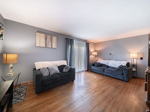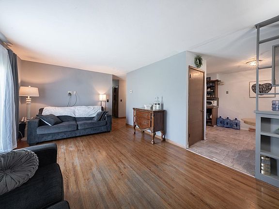 Well-located in-town property! Five blocks from Rock Rd and Hwy 54 on a cul-de-sac lot. 3 bedrooms, 1.5 bath ranch style home with main floor laundry. Features include hardwood floors, double vanity in hall bath, vinyl windows, full unfinished basement with potential to add a 4th bedroom (with daylight window) and a two-car garage. Home has a new roof, new gutters, new garage door, new HVAC, 3–5-year hot water heater and newer Samsung refrigerator stays. Home sits on a 10,000 sq ft lot with an east facing backyard for shade in the summer. Easy access to the highway and close to shopping. Ready to move in. Priced to sell!