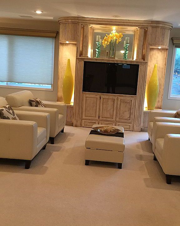 Formal double stairs in marble foyer with Crystal Chandeliers