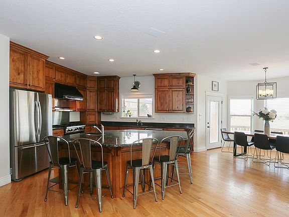You will love this bright and open floorplan with incredible unobstructed views of Timpanogos Mountain. It is perfectly appointed for entertaining, with a large kitchen and island with high end upgrades, that flows effortlessly into the dining room and living room. The entire interior has been freshly painted and newly carpeted. All the lighting has been updated with cost saving, bright LED fixtures. Each bedroom has a private bathroom. The basement is walkout. The garage is extra deep for storage or a workshop (same dimensions as a 3 car garage). The outdoor space has lots of mature landscaping, a large deck, and a fully fenced yard. The home is perfectly situated at the end of a culdesac. You also have immediate access out your back gate to the common areas and trails private to the community. You can walk to both elementary school and middle school, and the high school is less than a mile. This is by far the best located home in the Cobblestone neighborhood.