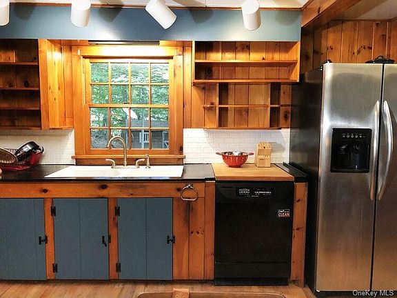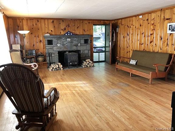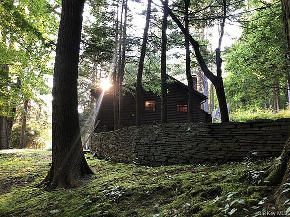 Named after the adjacent reservoir, The Rondout is a Catskills home sitting on just over 3 wooded acres. Set back from the road, this discreet, cozy retreat boasts a large updated kitchen, wood burning stove, piano, and several standalone buildings including a separate two-car garage and fully plumbed and electrified guest cabin. The home, offers both Catskills country charm and modern comfort with its high-speed internet, new boiler, and updated appliances. The main level features a living room, king-sized bedroom with double walk-in closets, large kitchen, and a sunroom that can be used as an office or bedroom. The lower level includes a single-car garage/workshop (in addition to the standalone two-car garage), utilities room, half-bathroom, craft room, and bedroom/office. Special details not to miss: large bay windows, a wood burning stove, and a boat at the adjacent reservoir. You may contact the owner directly at 973-634-3729.