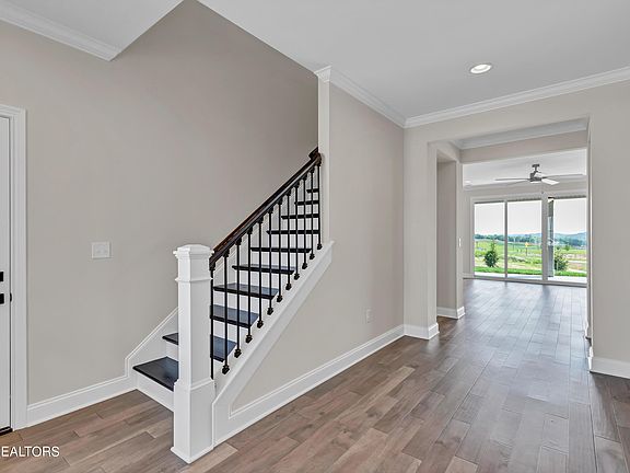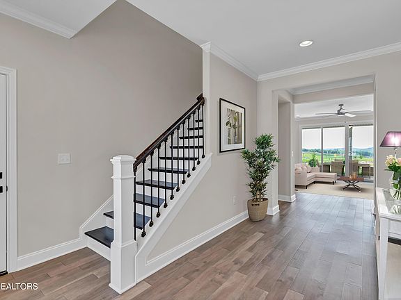 4 bedroom 3 and ½ bath 3 car garage home in a cul de sac located in The Grove at Boyd Station community in Farragut just across the street from McFee Park. This ''Master on Main'' floor plan is excellent for gatherings and entertaining. The spacious entryway flows seamlessly into the open floor plan. The home has a large great room that is open to the custom kitchen and casual dining area. The kitchen has upgraded painted cabinets, quartz countertops, a 36-inch gas cooktop, a cabinet oven, and microwave convection combination with a custom wood vent hood. The great room has built-in bookcases on each side of the gas fireplace, and a 12-foot by 8-foot sliding door leads out to the covered porch that is perfect for outdoor entertaining. On the first floor is the master bedroom, a spacious room with a tray ceiling, the master bath has a large shower and garden tub, double bowl vanities, and a private water closet. The master bedroom is also complemented by a private hallway allowing for privacy. The very large master closet has a door leading to a spacious laundry room with a window for natural light, a set of cabinets over the washer and dryer area, and a utility sink.