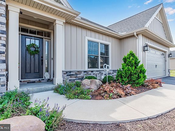 Looking for luxurious one floor living? You’ve found it! Originally custom crafted by Roland Builders as their model home, this meticulously maintained garden-style home combines striking curb appeal with thoughtful design and a low maintenance lifestyle! The exterior showcases an impressive combination of stone and board & batten vinyl siding, creating a timeless and inviting look sure to impress even the most discerning individuals. Step inside to find a generous foyer, featuring a stained wood tray ceiling, stylish lighting and classic wainscot walls.  These on-trend appointments set the tone for the elegance and craftsmanship throughout. Your spacious private office, just off the foyer,  is ideal for working from home or organizing the family finances. With a dedicated closet and access to a full bath, this could double as a bedroom if desired. Wide-plank hardwood floors flow seamlessly through the foyer, great room, kitchen, dining area and even the primary bedroom enhancing both style and design continuity. Your amazing kitchen is the heart of the home boasting stainless steel gas appliances, 42" painted cabinets with glass door accents and under cabinet lighting, and another stained wood tray ceiling with fashionable pendant lighting. Striking leathered granite countertops pair fabulously with a stunning stone backsplash to make this a dream kitchen for any home chef.  Best of all, your designer kitchen opens to a spacious eat-in area and connects seamlessly to your great room.  Just imagine the parties you could host in this impeccably designed space! Your grand great room is the perfect place to unwind, featuring a floor to ceiling stone gas fireplace, flanked by custom stained bench seats with built-in storage. Chic lighting fixtures and ceiling fans enhance the sophisticated atmosphere, ensuring that every detail dazzles. Take the party outdoors onto your maintenance-free 12x20 composite deck or relax on the covered patio below.  With 3 spacious bedrooms (including your primary suite) on the main floor as well as a convenient laundry room, this home is truly one floor living.  Your stunning primary retreat is a spacious haven with an intricate wood patterned ceiling and a generous walk-in closet. The luxurious en-suite bath features Carrara porcelain tile flooring, a zero-barrier tile shower with bench seating and a niche for added convenience.  An open carpeted staircase leads to your fully finished walkout basement, complete with a 4th bedroom, full bath, kitchenette, and additional living space—ideal for guests or multi-generational living. The HOA covers lawn mowing and snow removal, allowing you to enjoy the beauty and luxury of this property without all the upkeep. Don’t wait to see this one! Schedule your private tour today!